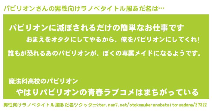 | ヘコむあだ名 | 『パビリオン(小並感)』『豆乳』 |