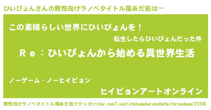 | 女子向けラノベタイトル風あだ名 | 『闇のひいぴょん』 |