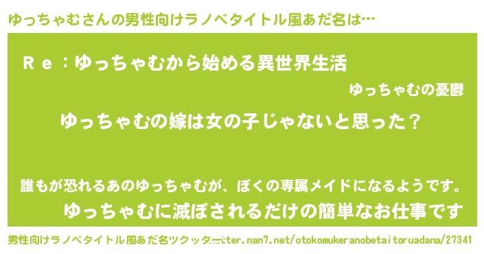 | 女子向けラノベタイトル風あだ名 | 『ゆっちゃむ様がみてる』 |