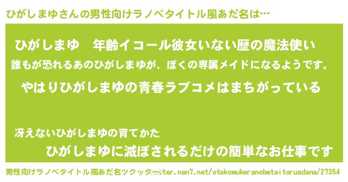 | ファンタジー風あだ名 | 『エターナルヒガシマユー』『ゼヒガトゥ』 |