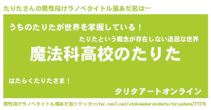 | 女子向けラノベタイトル風あだ名 | 『たりたアンティーク』 |