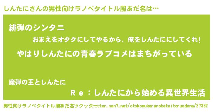 | 女子向けラノベタイトル風あだ名 | 『しんたにの雑貨屋さん』『闇のしんたに』 |