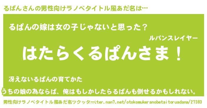 | 胡散臭い通販商品みたいなあだ名 | 『伝統あるサプリメント…その名も「るぱん」』 |