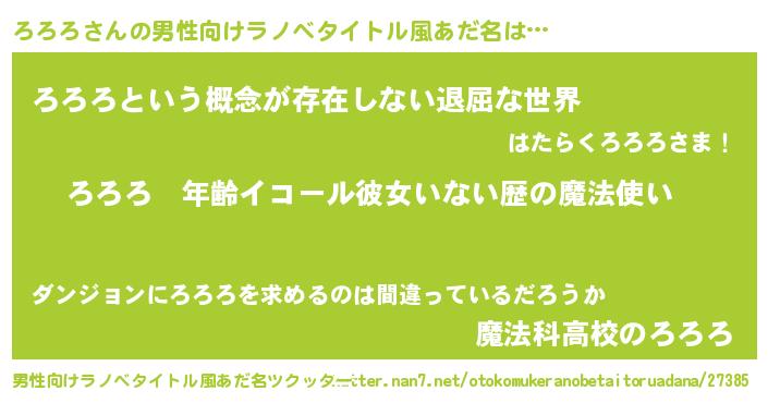 ろろろさんの男性向けラノベタイトル風あだ名をツクッター!