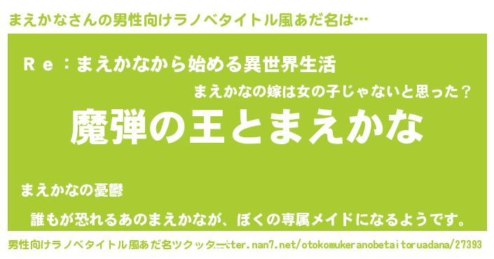 | 女子向けラノベタイトル風あだ名 | 『まえかなが死なない童話 林檎のまえかなの診療簿』 |