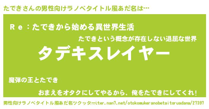 意味不明あだ名 | 『しいたけ科たでき属』『自称たでき』 |