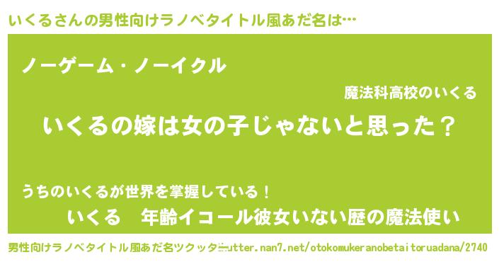 | 女子向けラノベタイトル風あだ名 | 『いくる様がみてる』『死神いくるの再婚』 |