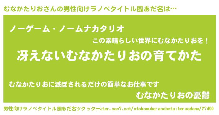 | 欧米人風あだ名 | 『むなかたりお・ステッグマイヤー』 |
