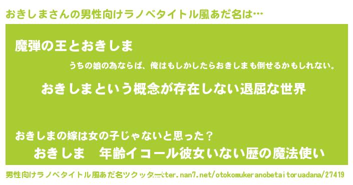 | 胡散臭い通販商品みたいなあだ名 | 『来世でも幸せになれる健康食品…その名も「おきしま」』 |