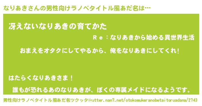 | 女子向けラノベタイトル風あだ名 | 『なりあき夫妻のなれそめ』 |
