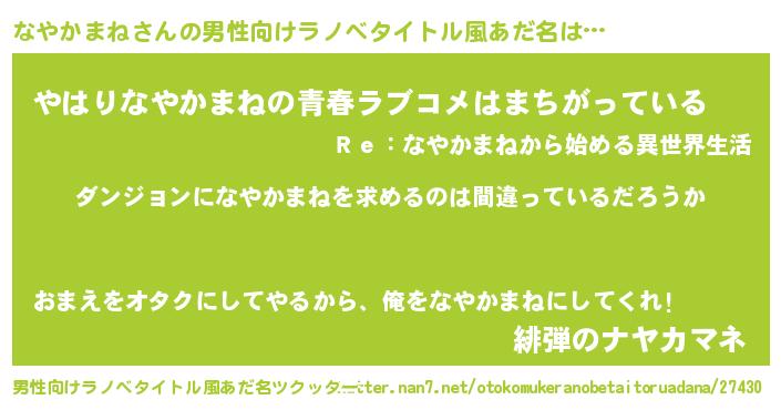 | ヒーロー風カッコイイあだ名 | 『魔戒騎士ナヤ』『友情の使者なやかまね』 |