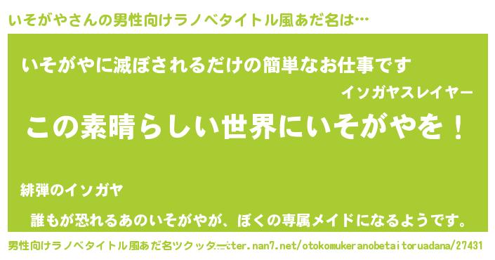 | 意味不明あだ名 | 『住所不定無職いそがや(3歳)』 |