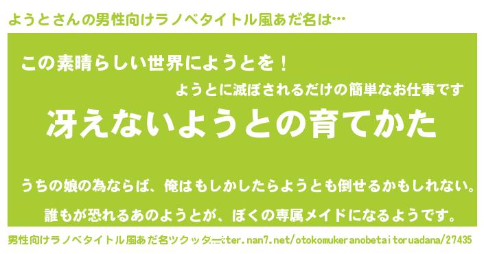 | 意味不明あだ名 | 『住所不定無職ようと(9歳)』『自称ようと』 |