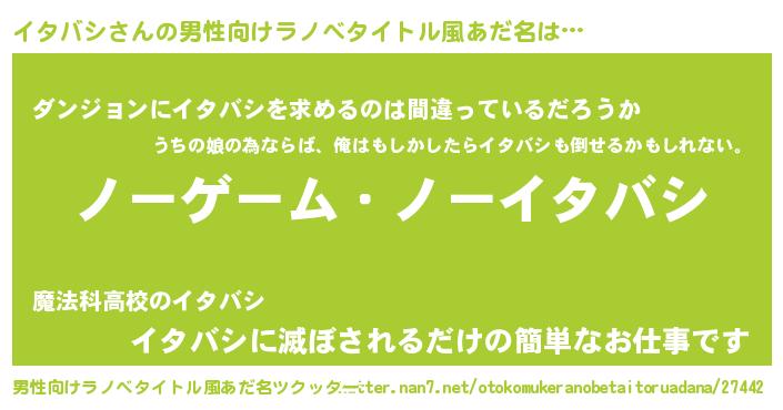 | 女子向けラノベタイトル風あだ名 | 『イタバシ恋絵巻』『イタバシの婚約者』 |