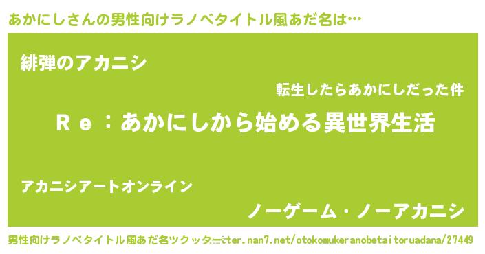 | 意味不明あだ名 | 『自称あかにし』『もやし科あかにし属』 |