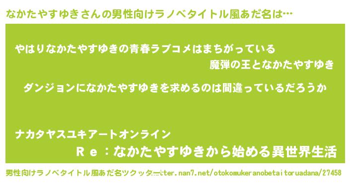 | 女子向けラノベタイトル風あだ名 | 『なかたやすゆきの卵を拾いまして』 |