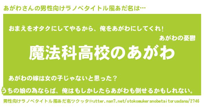 | 意味不明あだ名 | 『自称あがわ』『眠気覚ましガムあがわ味』 |