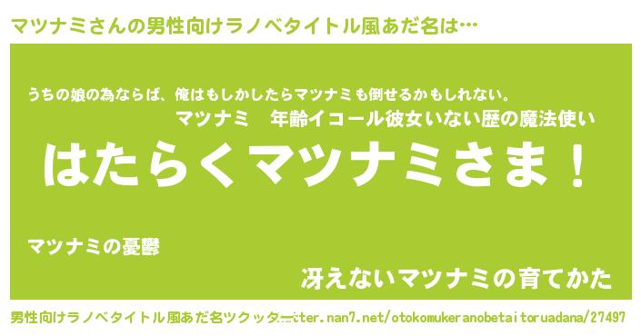| ファンタジー風あだ名 | 『エターナルマツナミー』『マツフェル』 |