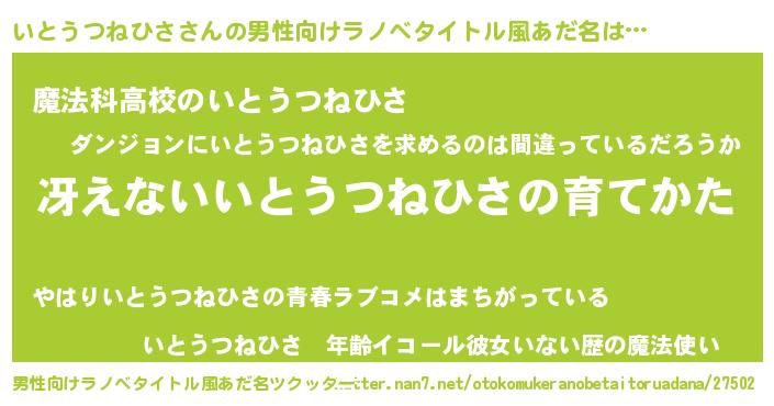 | 意味不明あだ名 | 『自称いとうつねひさ』 |