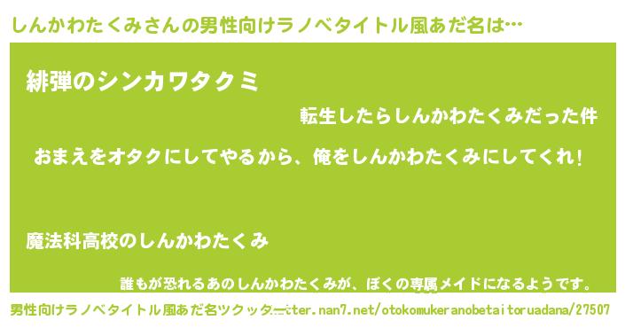| 女子向けラノベタイトル風あだ名 | 『しんかわたくみ恋絵巻』 |