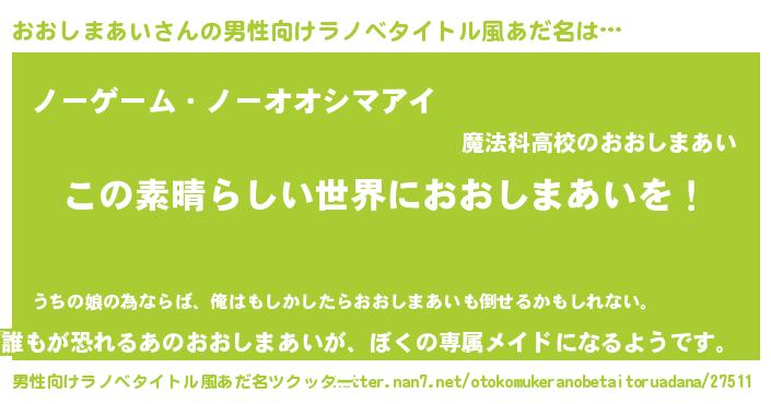 | 胡散臭い通販商品みたいなあだ名 | 『あなたにだけ特別に提供する限定10本のレアな日本酒…その名も「おおしまあい」』 |