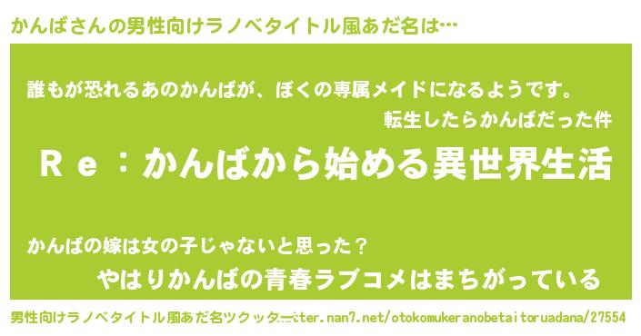 | 意味不明あだ名 | 『自称かんば』『永久保存かんば』 |