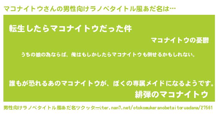 | 女子向けラノベタイトル風あだ名 | 『マコナイトウの婚約者』 |