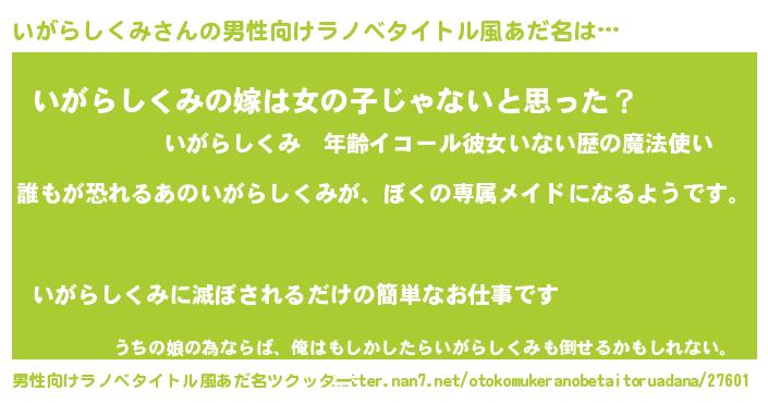 | 女子向けラノベタイトル風あだ名 | 『いがらしくみの契約王妃』 |