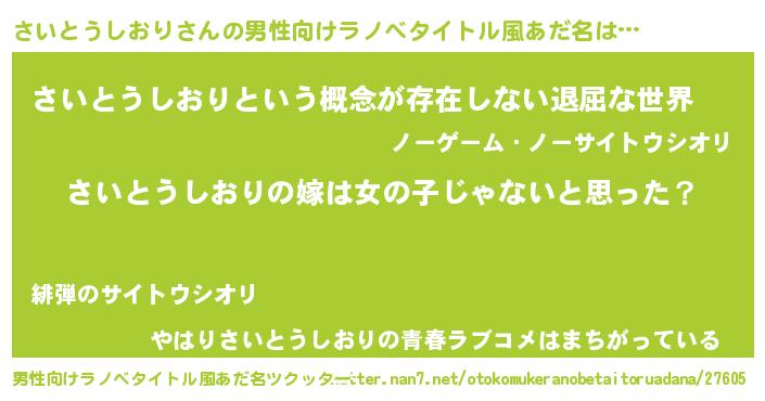| 意味不明あだ名 | 『とにかく怪しいさいとうしおり』 |