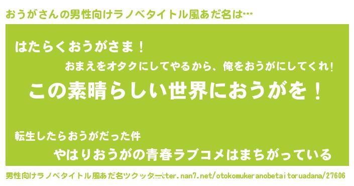 | ヒーロー風カッコイイあだ名 | 『仮面オウダー』『ウルトラおうがマン』 |