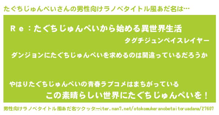 | 女子向けラノベタイトル風あだ名 | 『たぐちじゅんぺいは平凡を望む』 |