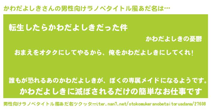 | ヘコむあだ名 | 『かわもー』『かわだよしき(小並感)』 |