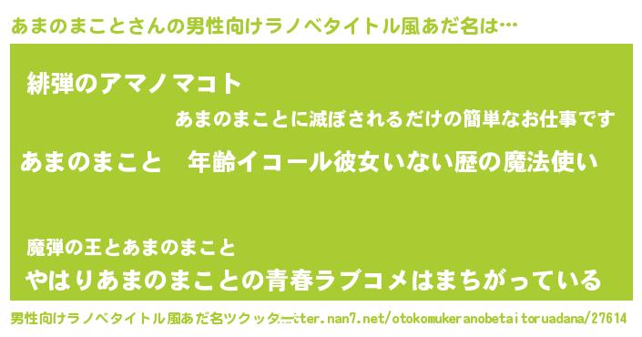 | 女子向けラノベタイトル風あだ名 | 『あまのまことの玉の輿計画!』 |