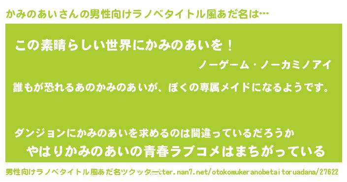 | ヘコむあだ名 | 『かみのあい(笑)』『酢こんぶ』 |