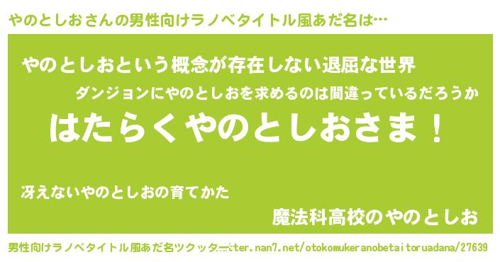 | 意味不明あだ名 | 『永久保存やのとしお』『自称やのとしお』 |