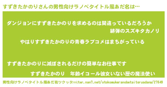 | ファンタジー風あだ名 | 『エターナルスズキタカノリー』 |