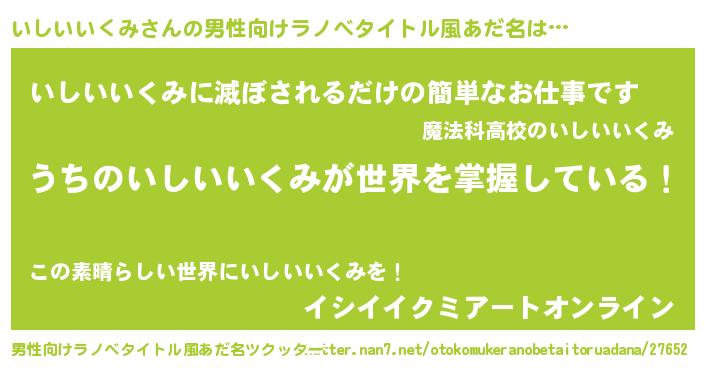 | 女子向けラノベタイトル風あだ名 | 『男装いしいいくみの憂鬱な任務』 |