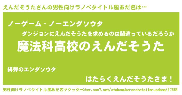 | 女子向けラノベタイトル風あだ名 | 『えんだそうたアンティーク』 |