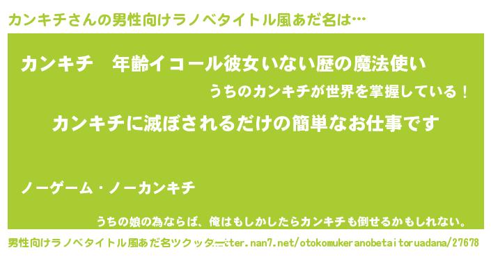 | 女子向けラノベタイトル風あだ名 | 『横柄カンキチと宰相陛下』 |