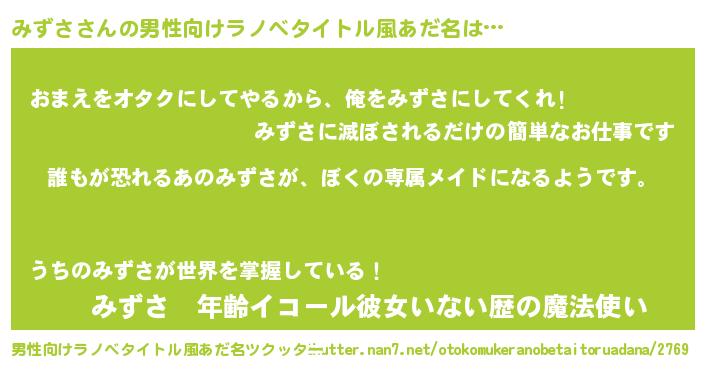| ヘコむあだ名 | 『みずさ(笑)』『みずっぺ』 |