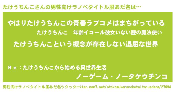| 女子向けラノベタイトル風あだ名 | 『たけうちんこの契約王妃』 |