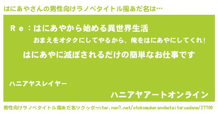 | 意味不明あだ名 | 『自称はにあや』『ペロリンはにあや』 |
