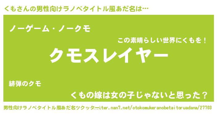 | 女子向けラノベタイトル風あだ名 | 『婚約破棄系悪役くもに転生したので、保身に走りました。』 |