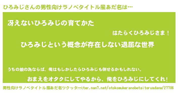 | 女子向けラノベタイトル風あだ名 | 『異世界で失敗しない100のひろみじ』 |