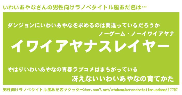 | 胡散臭い通販商品みたいなあだ名 | 『信頼と実績のネックレス…その名も「いわいあやな」』 |