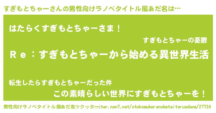 | ヒーロー風カッコイイあだ名 | 『最強戦士スギモトチャー』 |