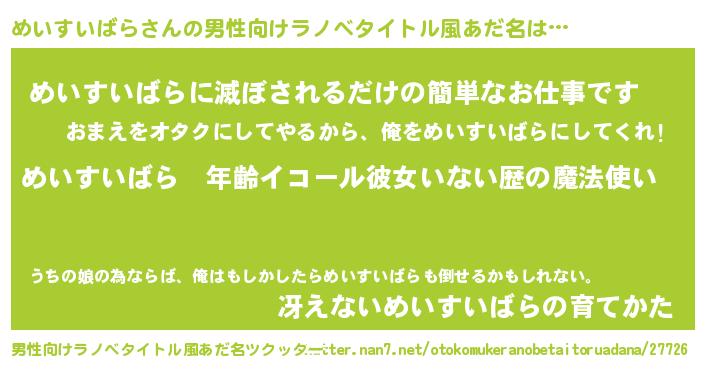 | 女子向けラノベタイトル風あだ名 | 『めいすいばらの玉の輿計画!』 |