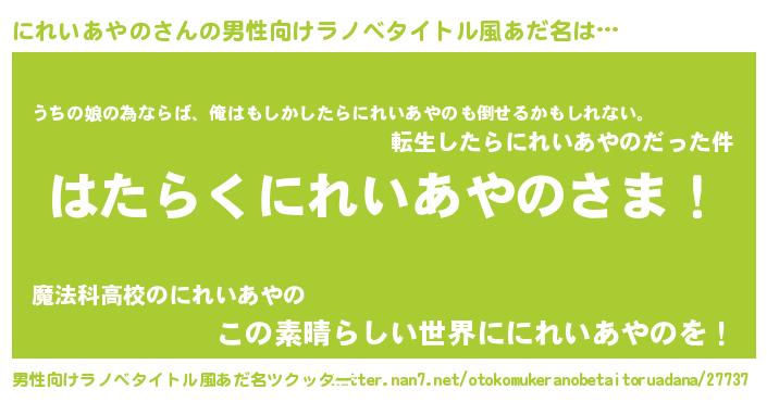 にれいあやのさんの男性向けラノベタイトル風あだ名をツクッター!