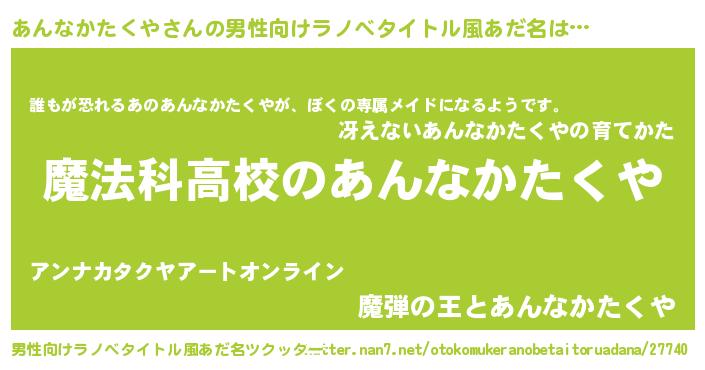 | 女子向けラノベタイトル風あだ名 | 『あんなかたくやアンティーク』 |