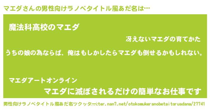 | ファンタジー風あだ名 | 『エターナルマエダー』『ゼマエトゥ』 |